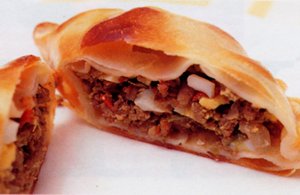 Picar finamente una cebolla y un morrón rojo y freír en poca cantidad de aceite. Agregar ½ kg. de carne picada, sal y pimienta a gusto y dejar hasta que la carne esté cocida.