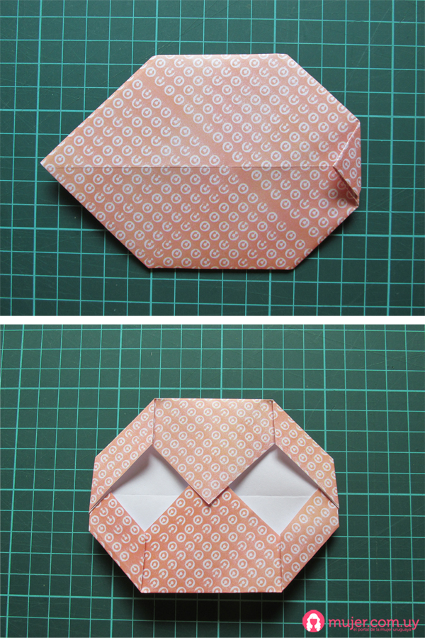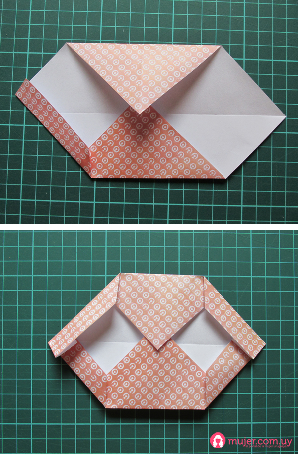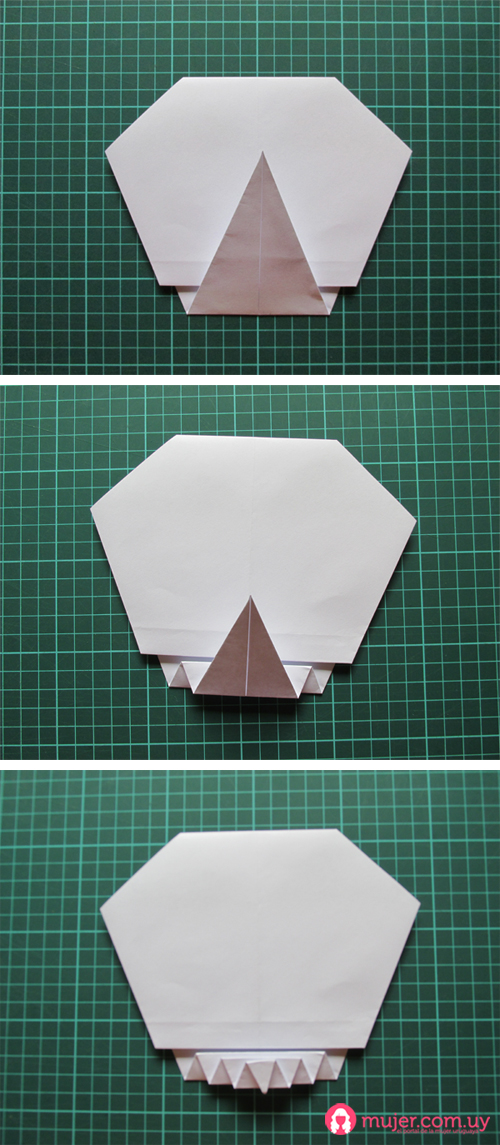 Luego doblamos la punta libre hacia adentro, pasándonos del medio.