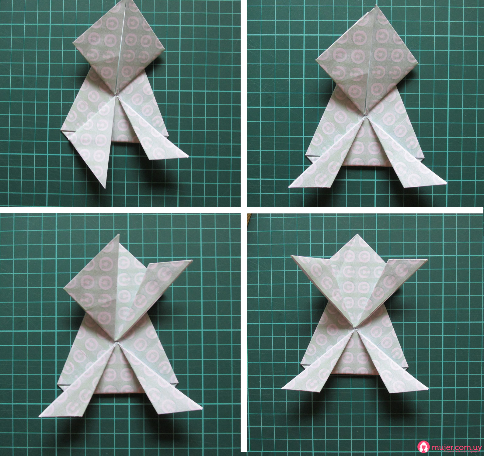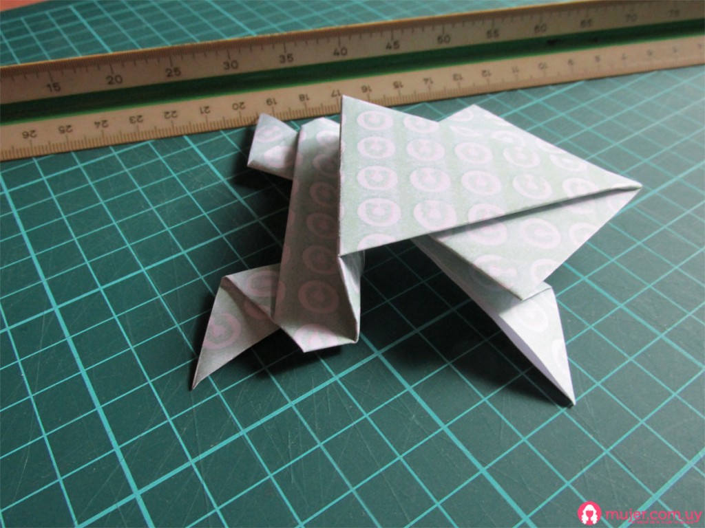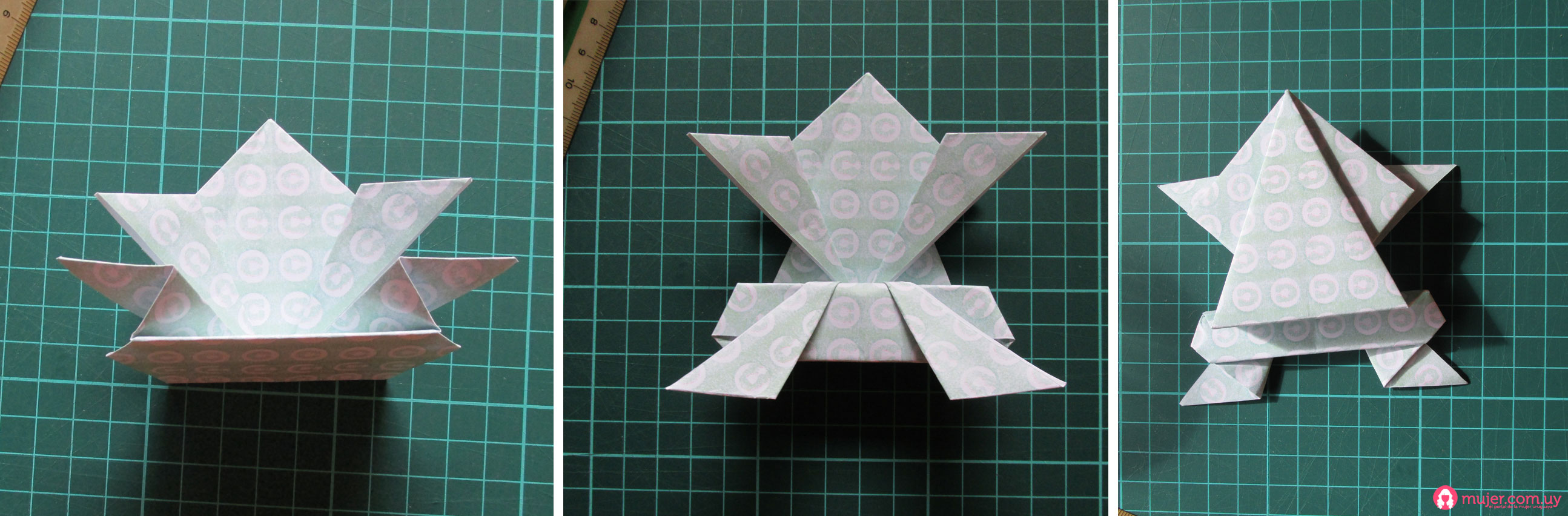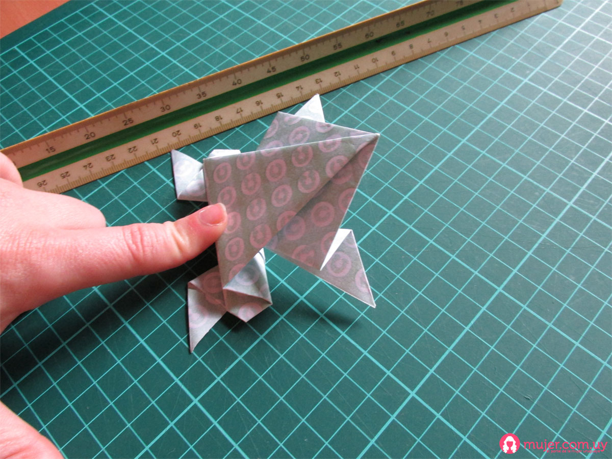 Lo único que resta hacer es doblar el sapo a la mitad y volver a doblar la mitad de atrás, para lograr que las patas de atrás queden más altas y pueda saltar!