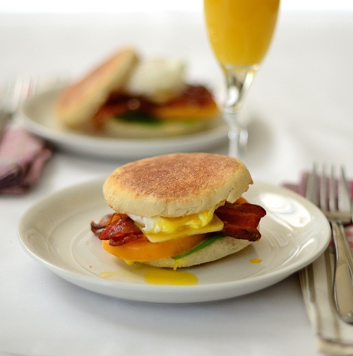 2) Sandwiches de huevo poche, rúcula y panceta