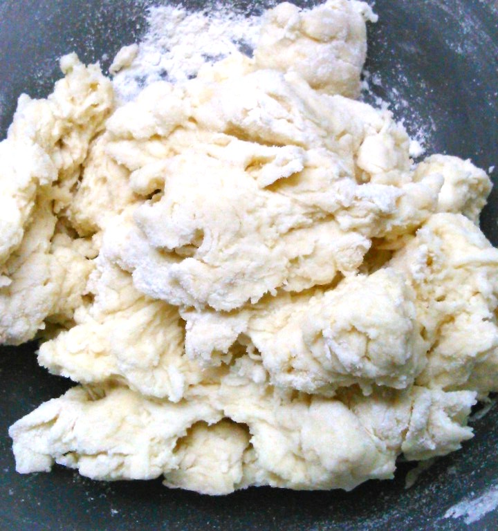 Mezclamos todo, y amasamos y alisamos hasta dejar la masa de unos 2cm de alto. (Tip para amasar y ensuciar menos: poné sobre la mesada film adherente, amasas sobre el film y cuando terminás de amasar lo retirás y la mesada está limpia!)